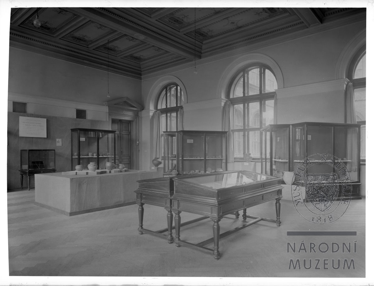 Výstava "Archeologické novinky z pravěku Čech a Moravy", rok 1950, sál č 6 - pohled na začátek výstavy.