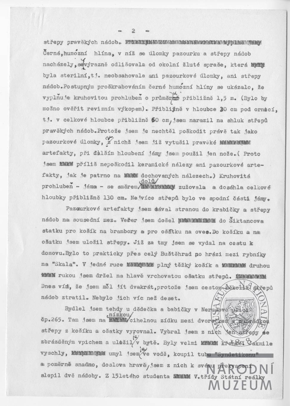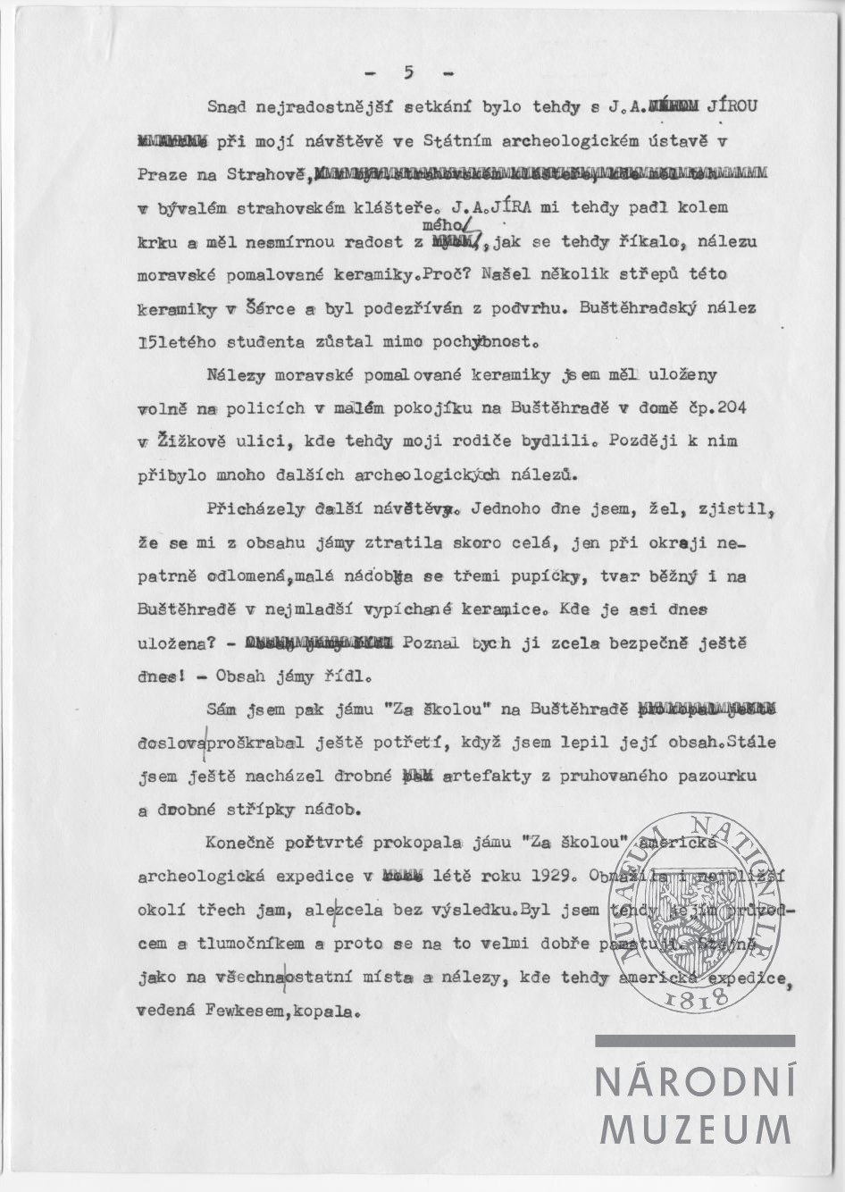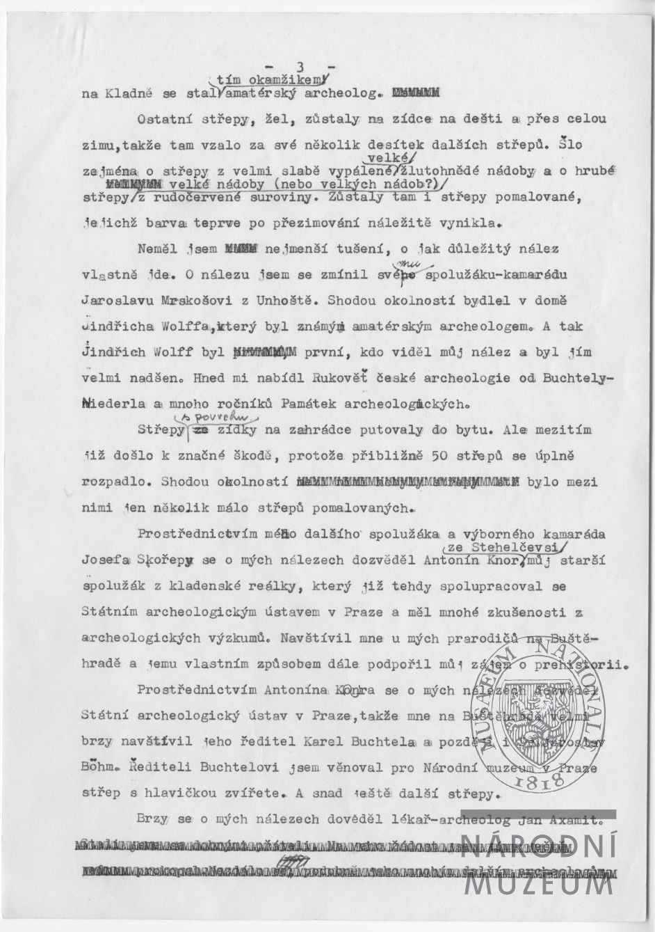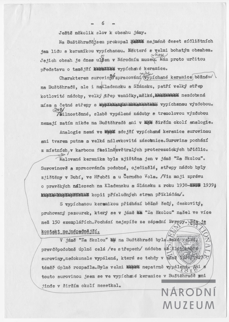 Zpráva o nálezu listovitého kopí objeveném roku 1910 a darovaném muzeu K. Žeberou. Zpráva K. Žebery o nálezu pazourků a keramiky kultury s moravskou malovanou keramikou v roce 1926.