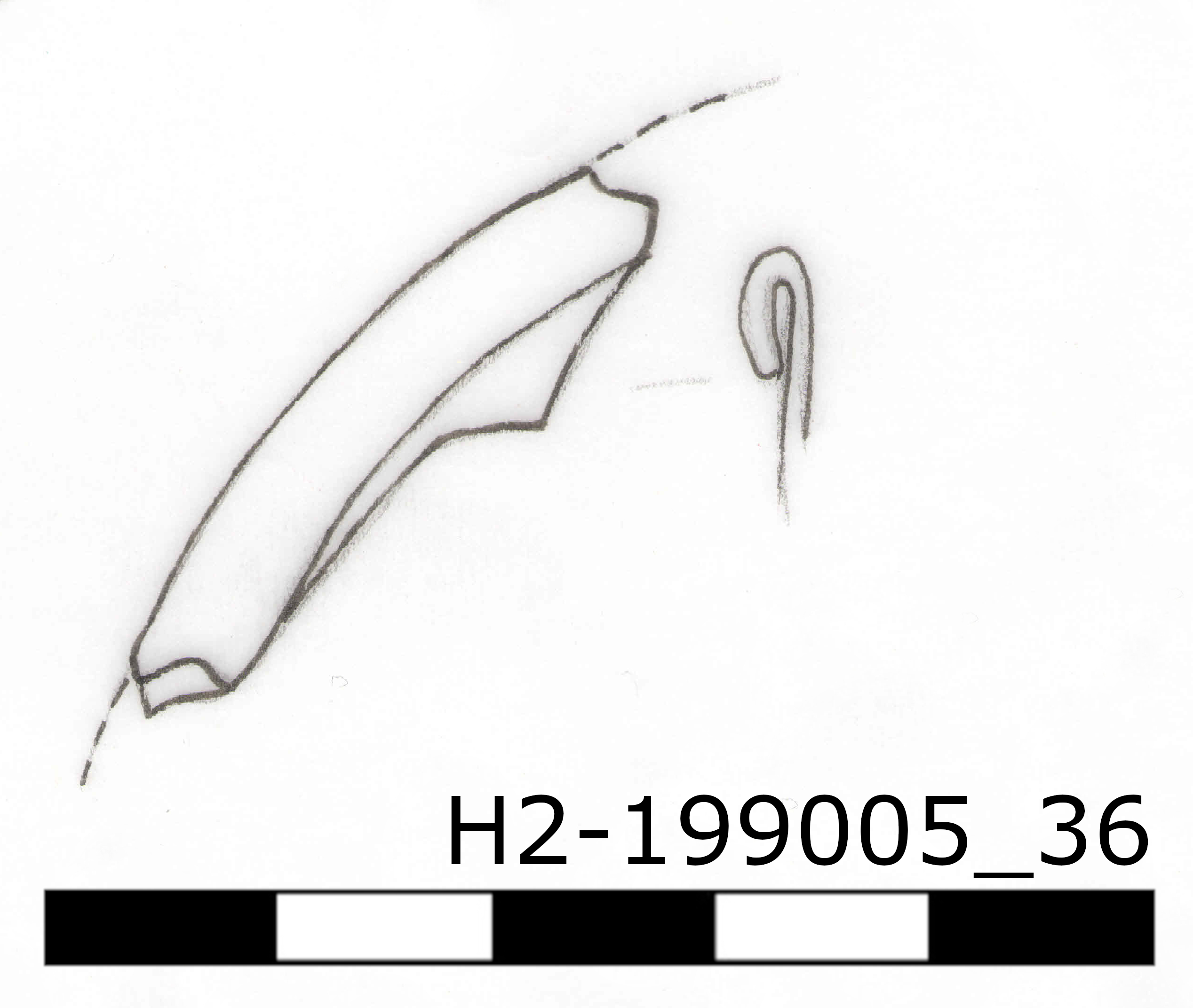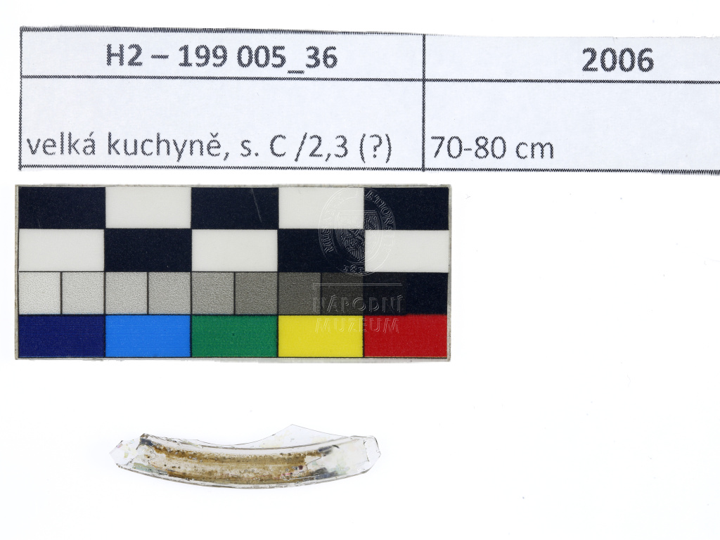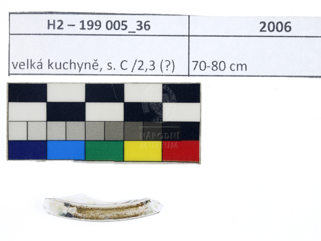 Jeden fragment okenního terčíku s přehnutým okrajem.