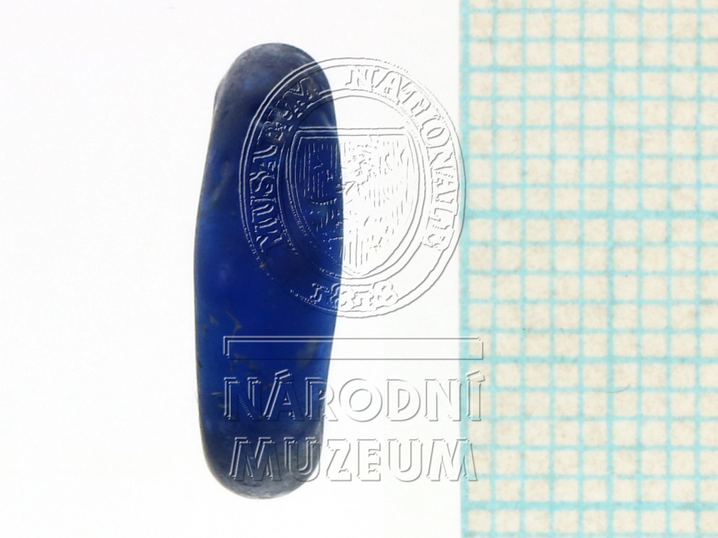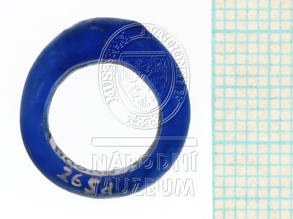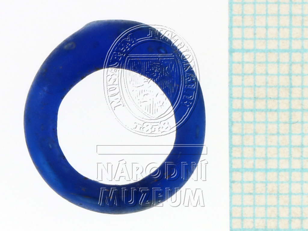 Drobný skleněný prsténcový korál temně modré kobaltové průsvitné barvy.
