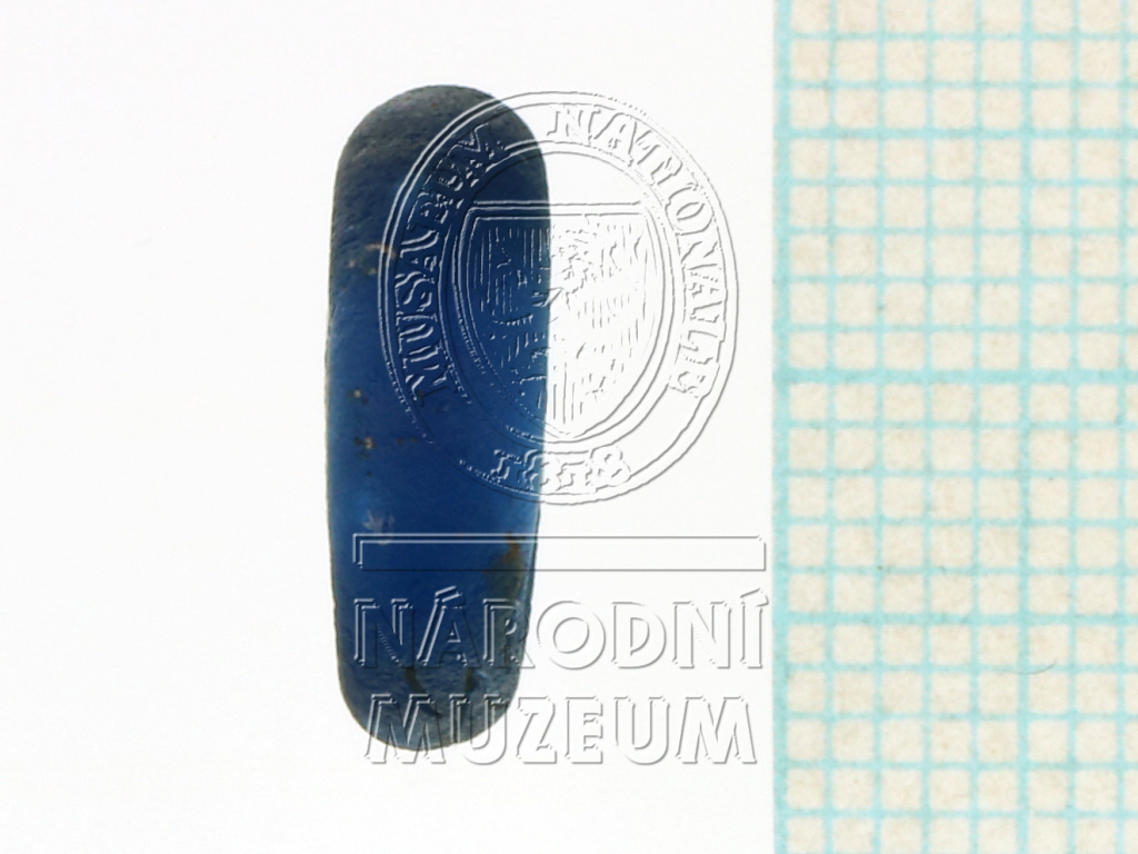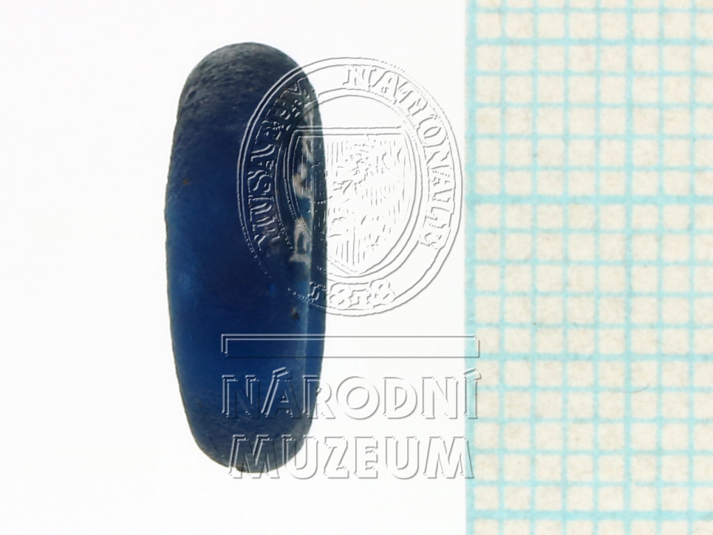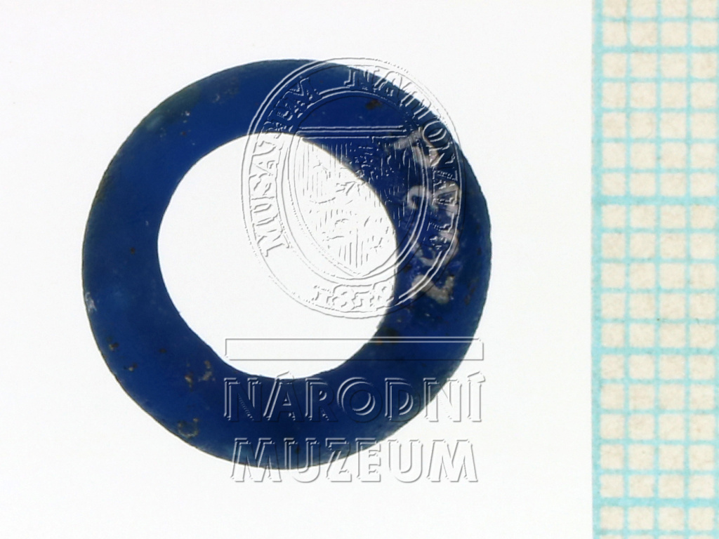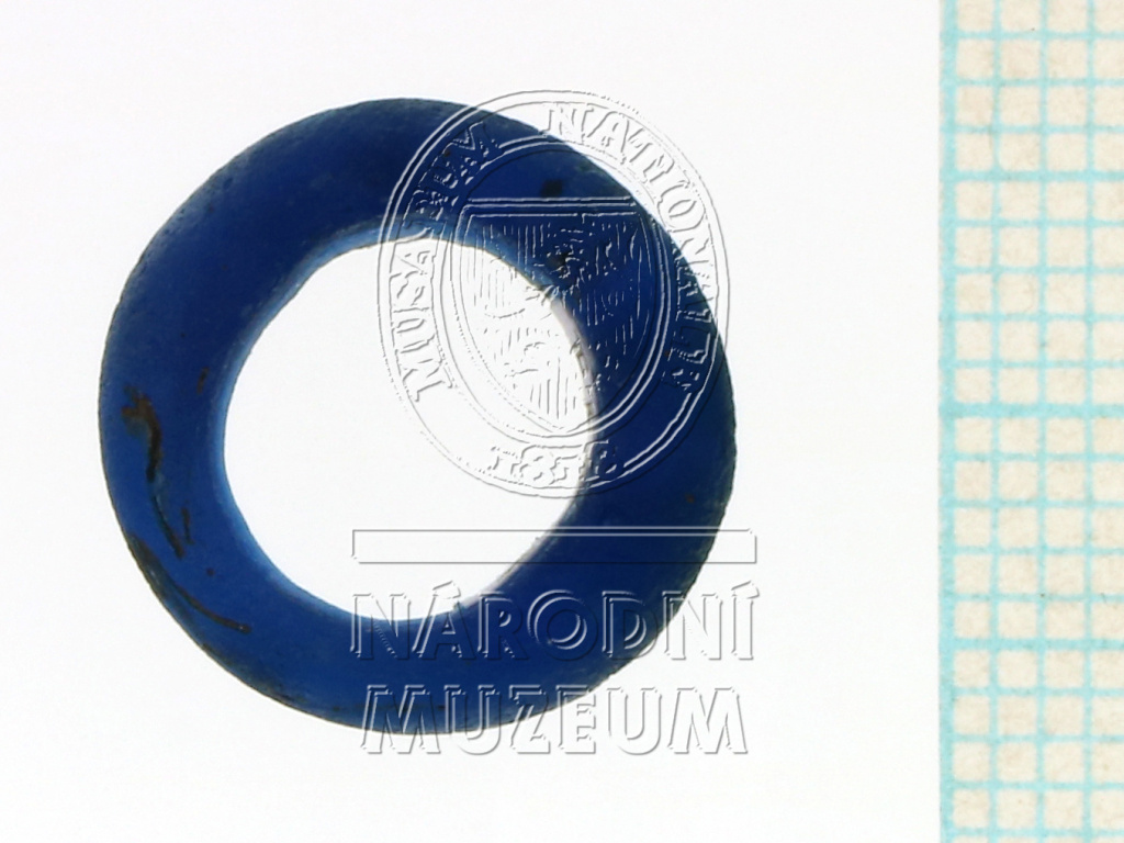 Drobný skleněný prsténcový korál temně modré kobaltové průsvitné barvy.